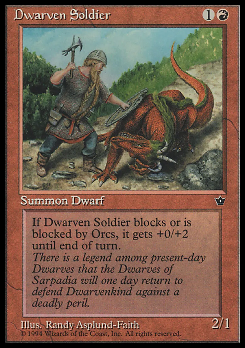 Magic: the Gathering (mtg) Common Creature - Dwarf Soldier Dwarven Soldier from Fallen Empires (FEM) last updated 2026-02-21 17:29:02