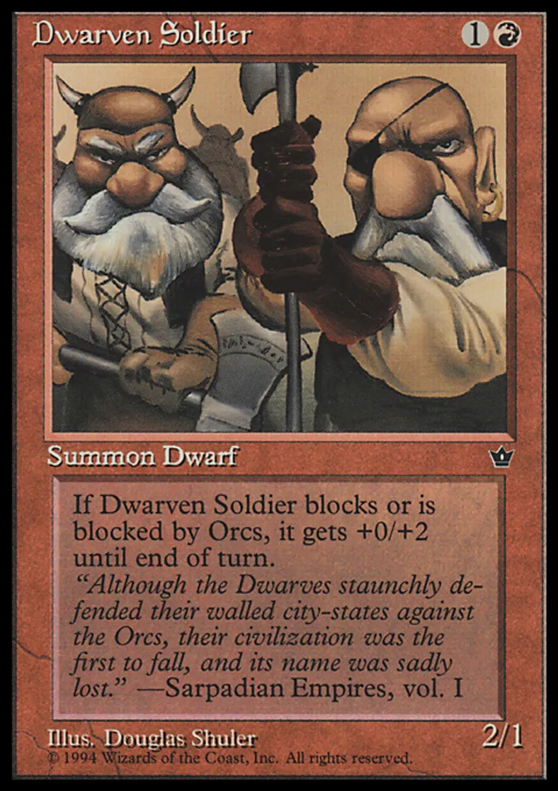 Magic: the Gathering (mtg) Common Creature - Dwarf Soldier Dwarven Soldier from Fallen Empires (FEM) last updated 2026-02-21 17:29:02
