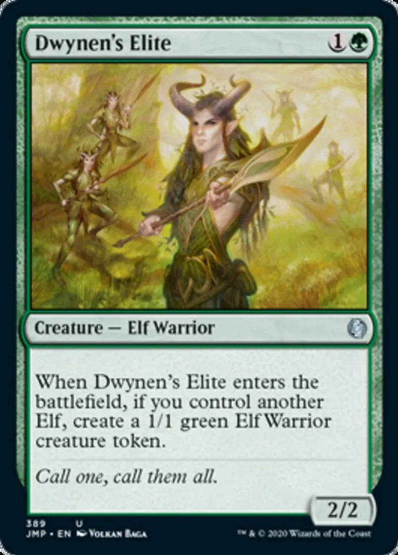 | Oracle Text | When Dwynen's Elite enters the battlefield, if you control another Elf, create a 1/1 green Elf Warrior creature token. | ||