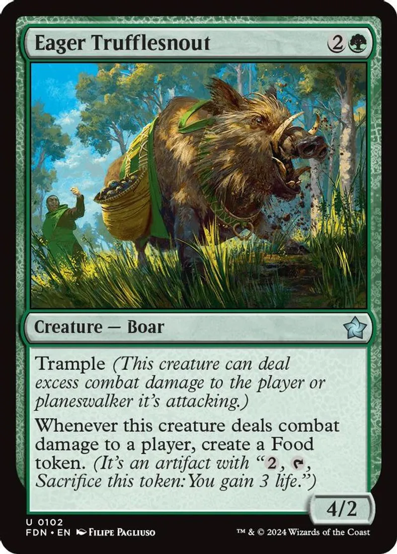 Magic: the Gathering (mtg) Uncommon creature — boar Eager Trufflesnout from Foundations (FDN) last updated 2025-12-13 15:31:32