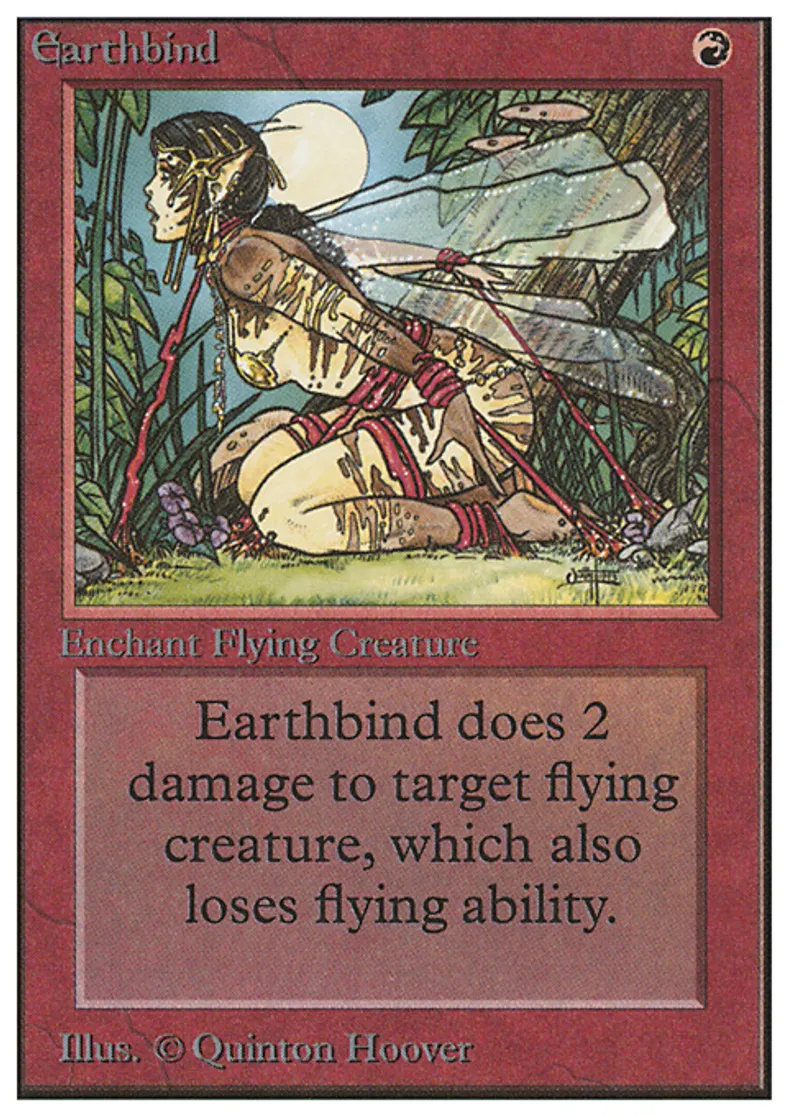 | Oracle Text | Enchant creature When Earthbind enters the battlefield, if enchanted creature has flying, Earthbind deals 2 damage to that creature and Earthbind gains "Enchanted creature loses flying." | ||