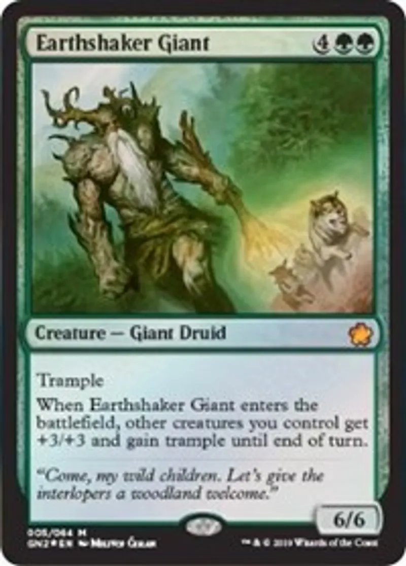 Magic: the Gathering (mtg) Mythic Rare Creature - Giant Druid Earthshaker Giant from Magic Game Night 2019 (GN2) last updated 2026-02-24 15:26:06