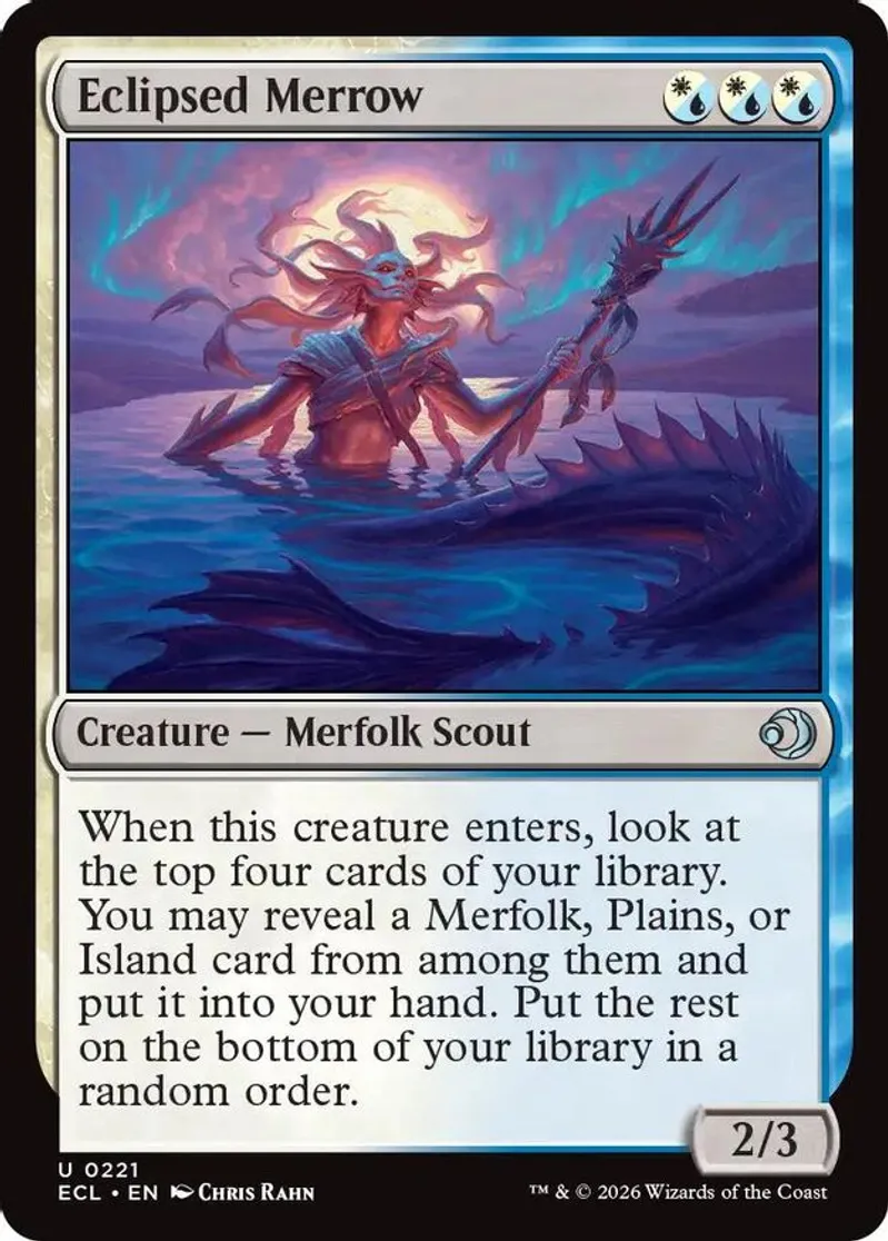 Magic: the Gathering (mtg) Uncommon creature — merfolk scout Eclipsed Merrow from Lorwyn Eclipsed (ECL) last updated 2026-01-11 16:22:35