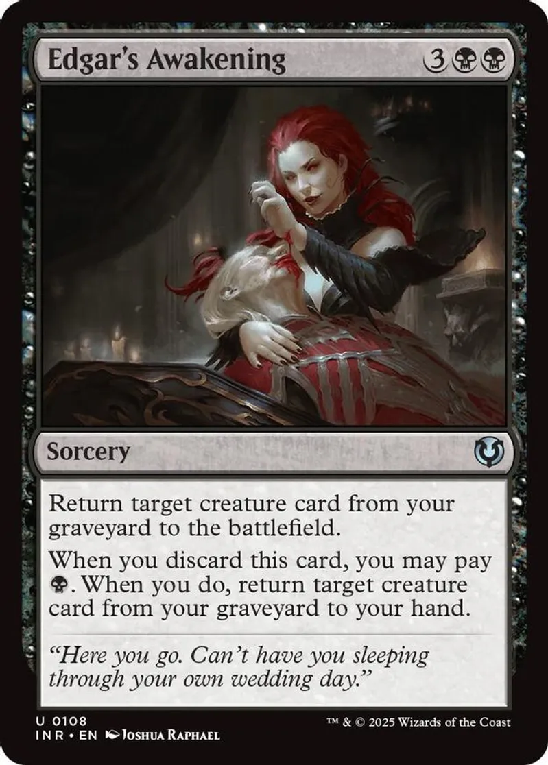Magic: the Gathering (mtg) Uncommon sorcery Edgar's Awakening from Innistrad Remastered (INR) last updated 2025-12-20 15:34:02