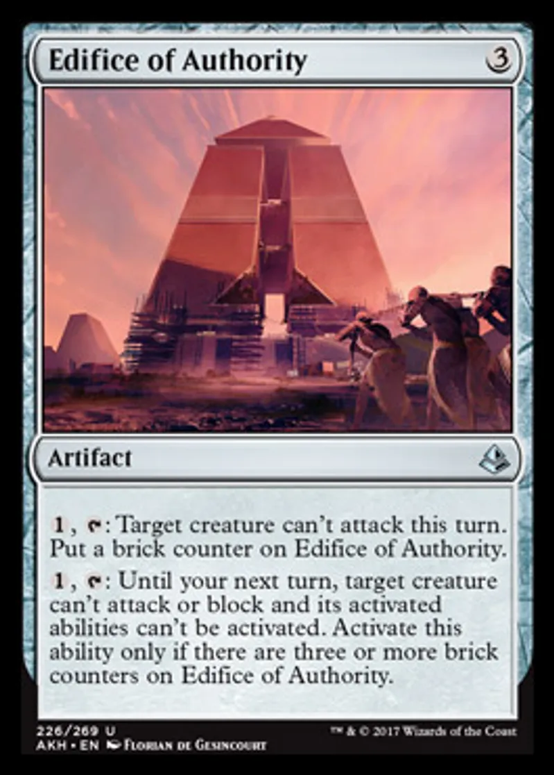Magic: the Gathering (mtg) Uncommon Artifact Edifice of Authority from Amonkhet (AKH) last updated 2026-02-21 16:45:32