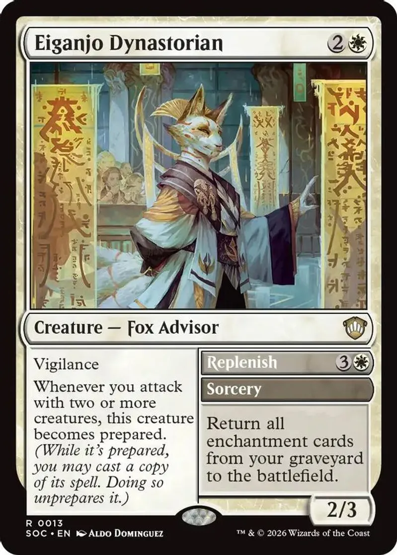 Magic: the Gathering (mtg) Rare creature — fox advisor Eiganjo Dynastorian from Commander: Secrets of Strixhaven (SOC) last updated 2026-04-17 00:14:36