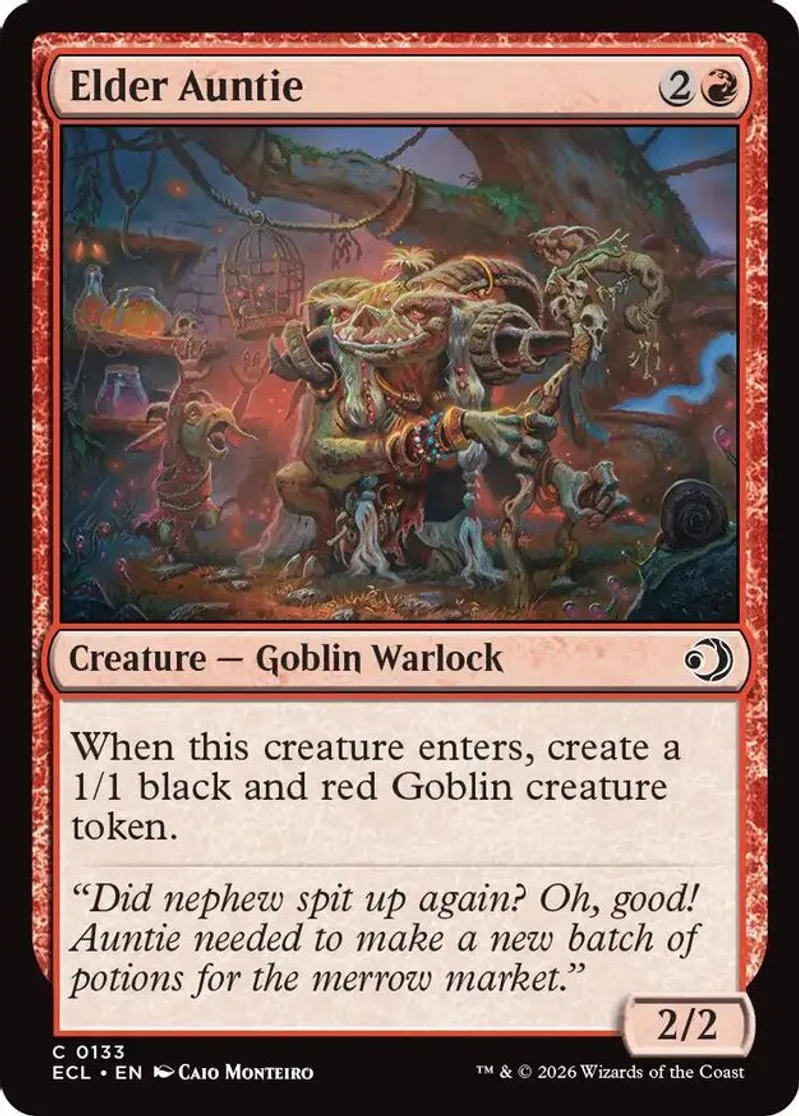 Magic: the Gathering (mtg) Common creature — goblin warlock Elder Auntie from Lorwyn Eclipsed (ECL) last updated 2026-01-11 16:15:35