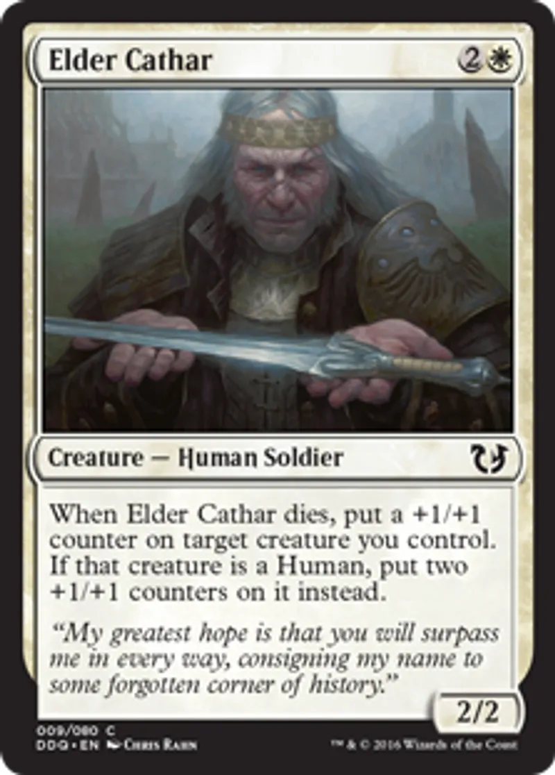 Elder Cathar is a Common in the set Duel Decks: Blessed vs. Cursed.