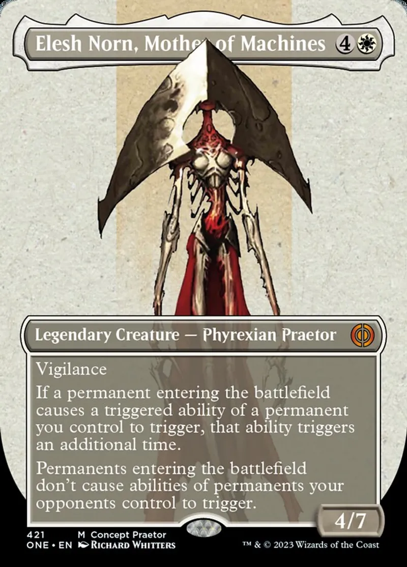 Magic: the Gathering (mtg) Mythic Rare Legendary Creature — Phyrexian Praetor Elesh Norn, Mother of Machines from Phyrexia: All Will Be One (one) last updated 2026-02-25 14:27:02