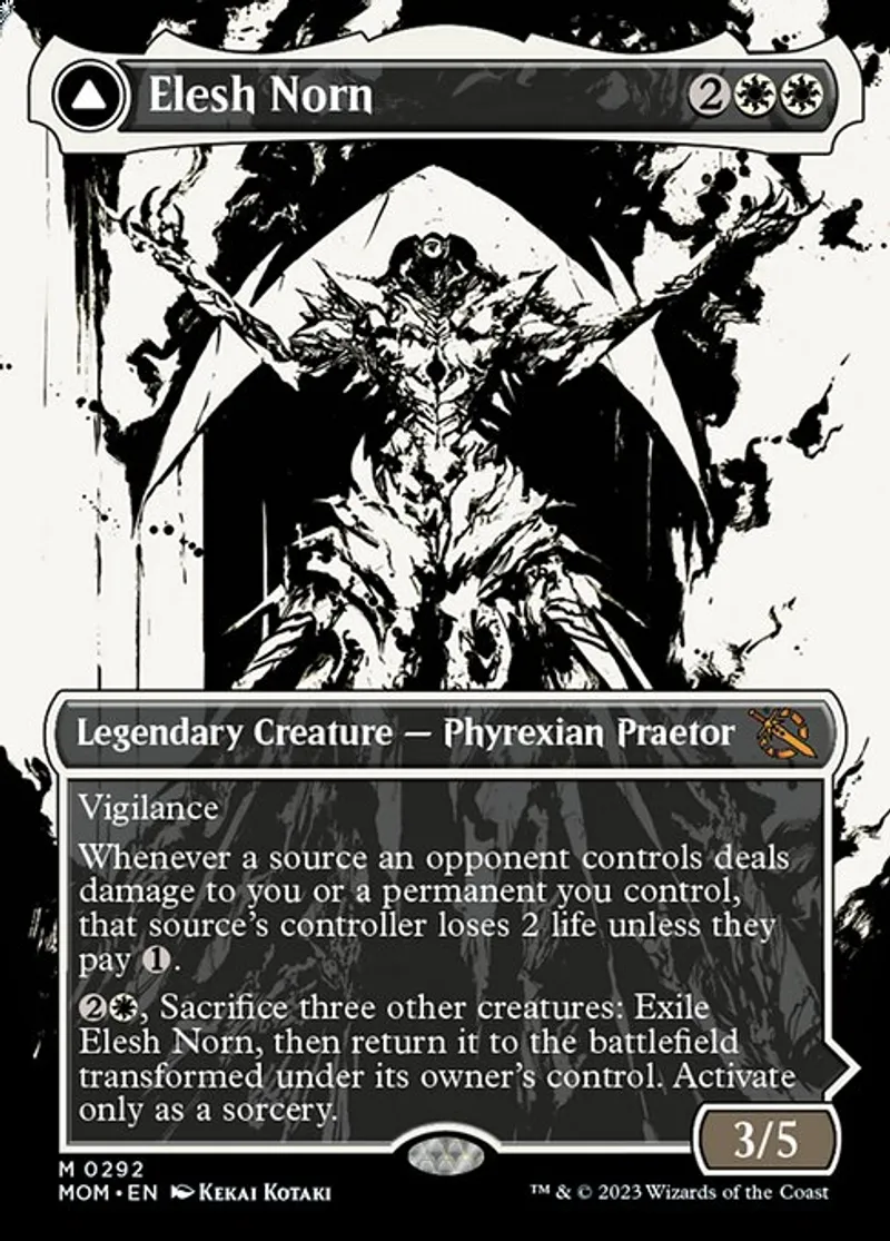 Magic: the Gathering (mtg) Mythic Rare Legendary Creature — Phyrexian Praetor // Enchantment — Saga Elesh Norn from March of the Machine (mom) last updated 2026-02-25 14:27:02