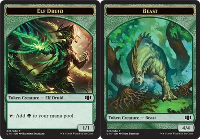 Elf Druid // Beast (4/4) Double-sided Token is a Token in the set Commander 2014 Tokens.