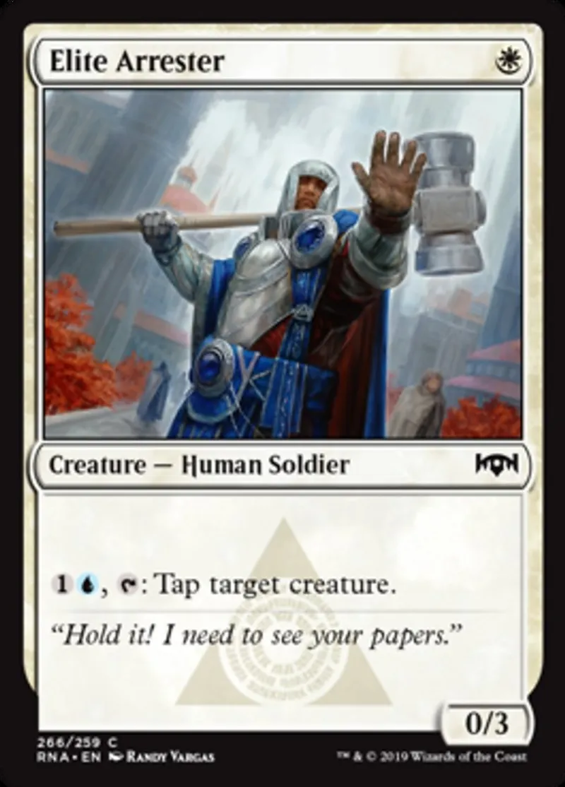 Magic: the Gathering (mtg) Common Creature — Human Soldier Elite Arrester from Ravnica Allegiance (RNA) last updated 2026-02-21 16:56:02