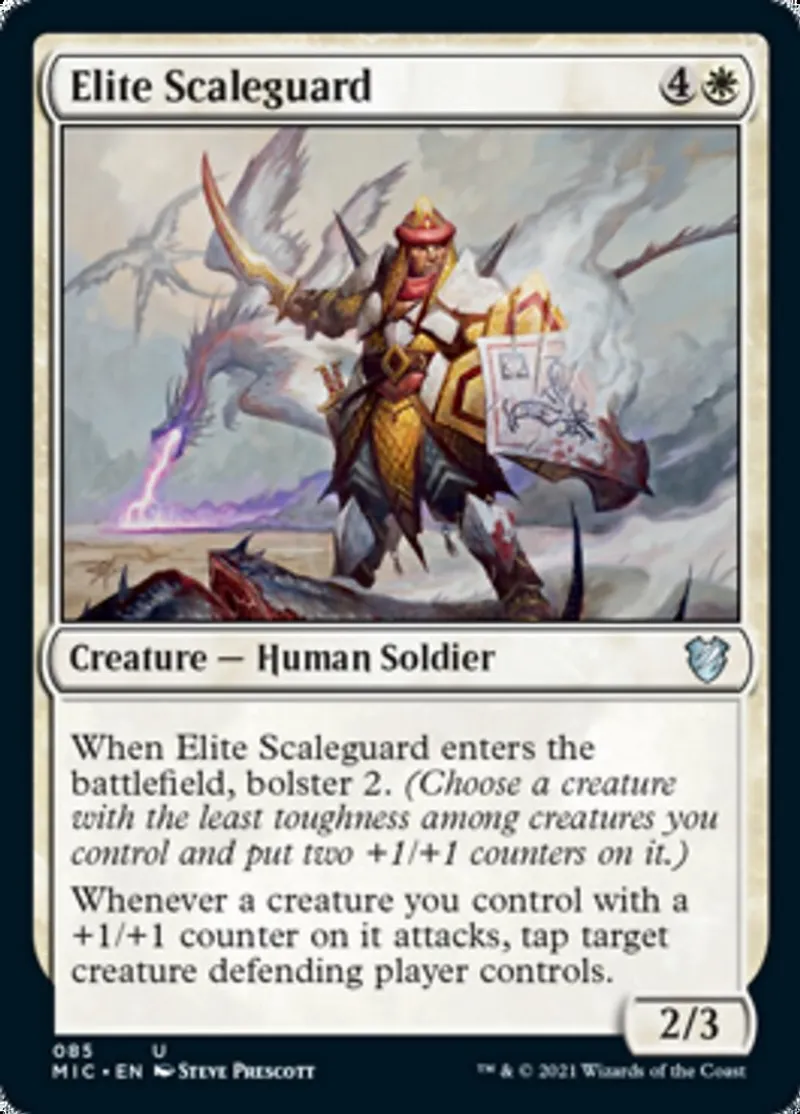 | Oracle Text | When Elite Scaleguard enters the battlefield, bolster 2. (Choose a creature with the least toughness among creatures you control and put two +1/+1 counters on it.)