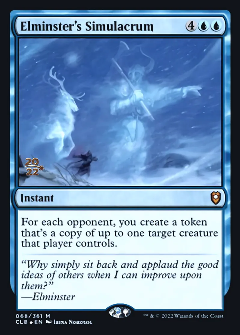 Magic: the Gathering (mtg) Mythic Rare Instant Elminster's Simulacrum from Prerelease Cards (pPRE) last updated 2026-02-21 16:10:06