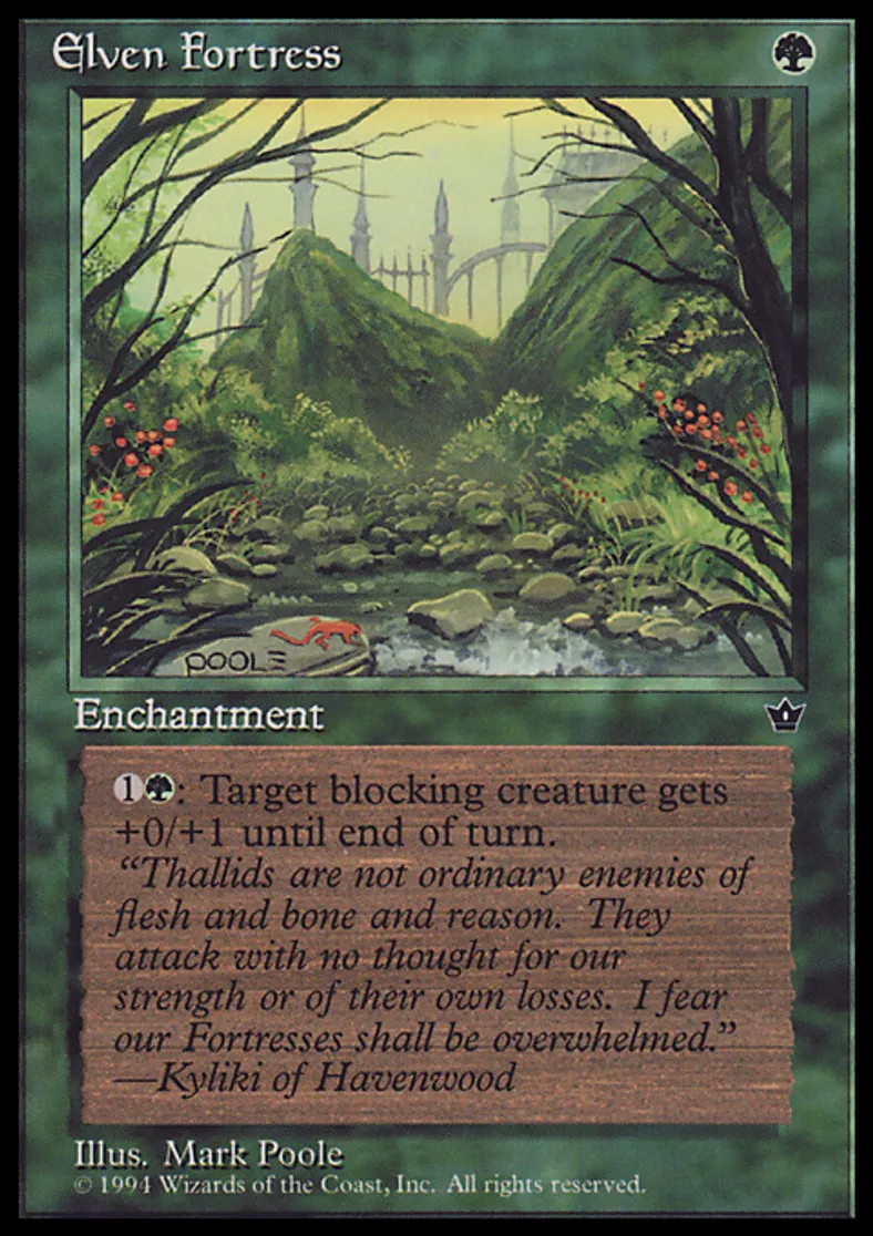 Magic: the Gathering (mtg) Common Enchantment Elven Fortress from Fallen Empires (FEM) last updated 2026-02-21 17:29:02