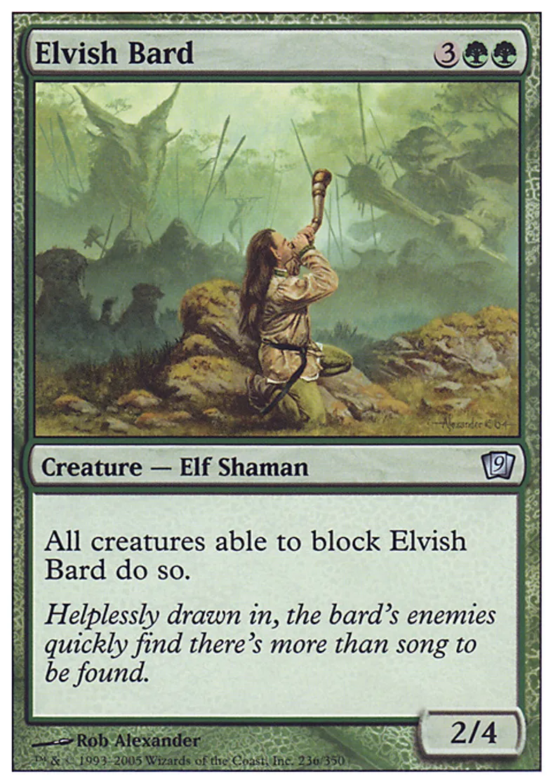 | Oracle Text | All creatures able to block Elvish Bard do so. | ||