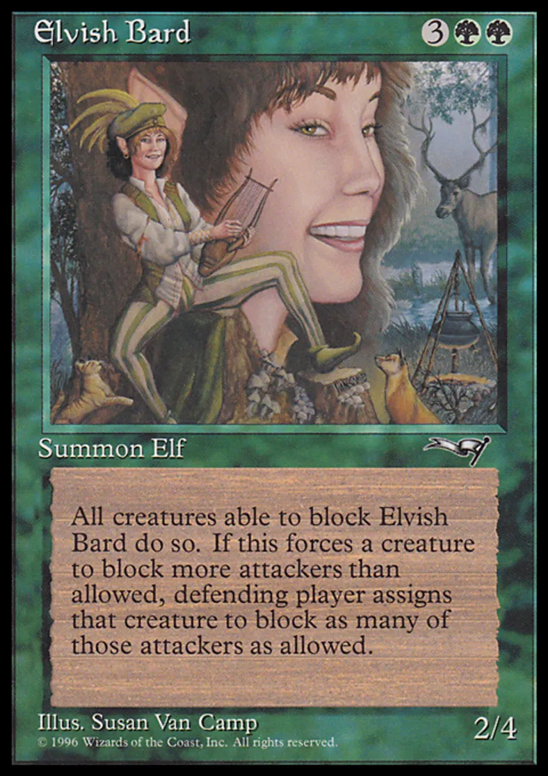 | Oracle Text | All creatures able to block Elvish Bard do so. | ||