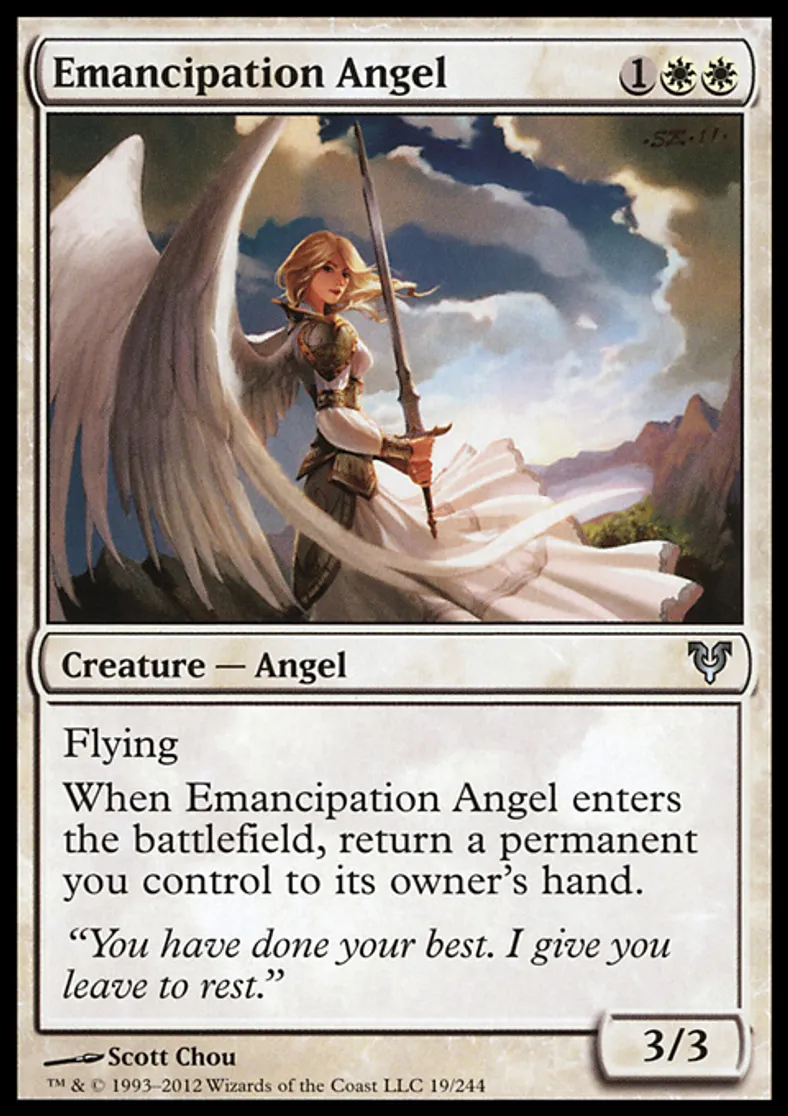 | Oracle Text | Flying When Emancipation Angel enters the battlefield, return a permanent you control to its owner's hand. | ||