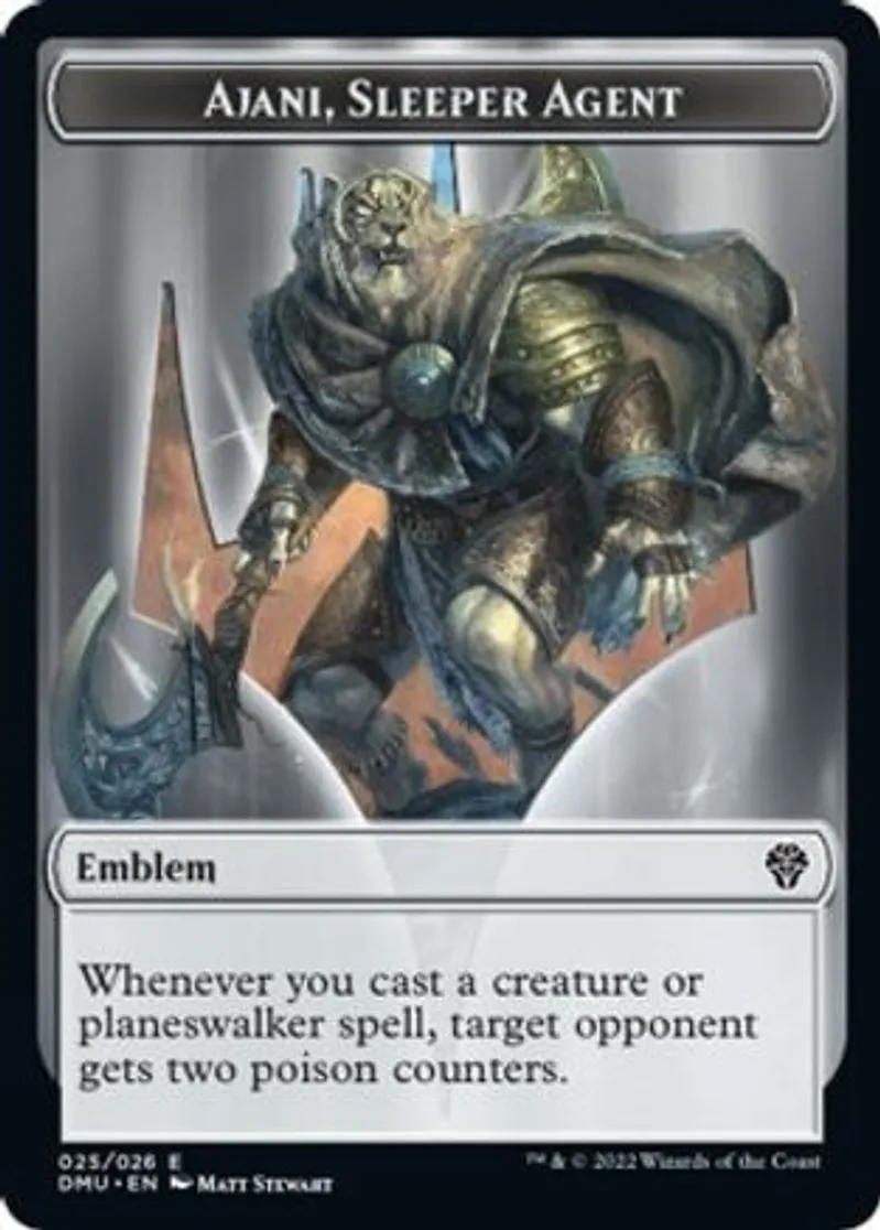 Magic: the Gathering (mtg) Token Emblem Emblem - Ajani, Sleeper Agent from Dominaria United Tokens (TDMU) last updated 2026-02-24 15:39:02