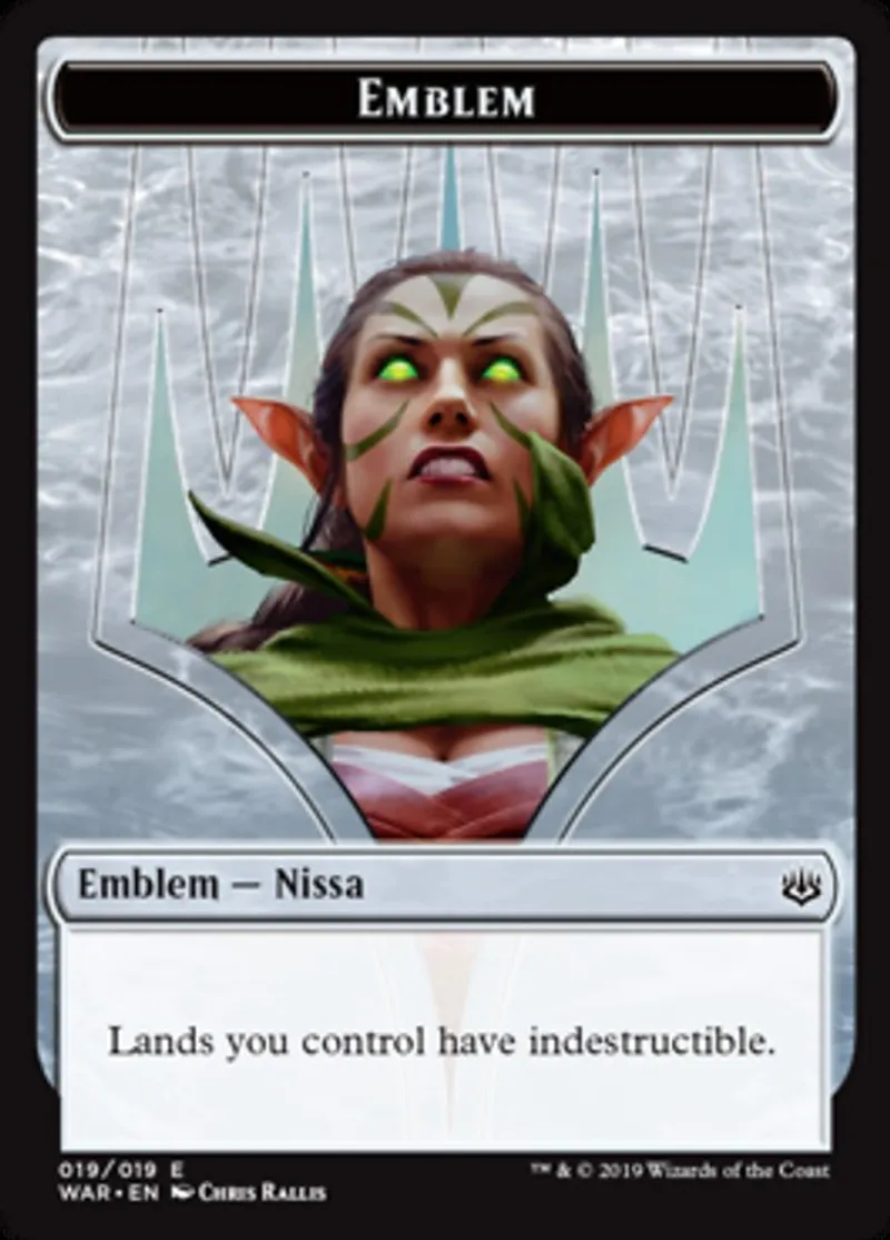 Magic: the Gathering (mtg) Token Emblem — Nissa Emblem - Nissa, Who Shakes the World from War of the Spark Tokens (TWAR) last updated 2026-02-24 15:01:06