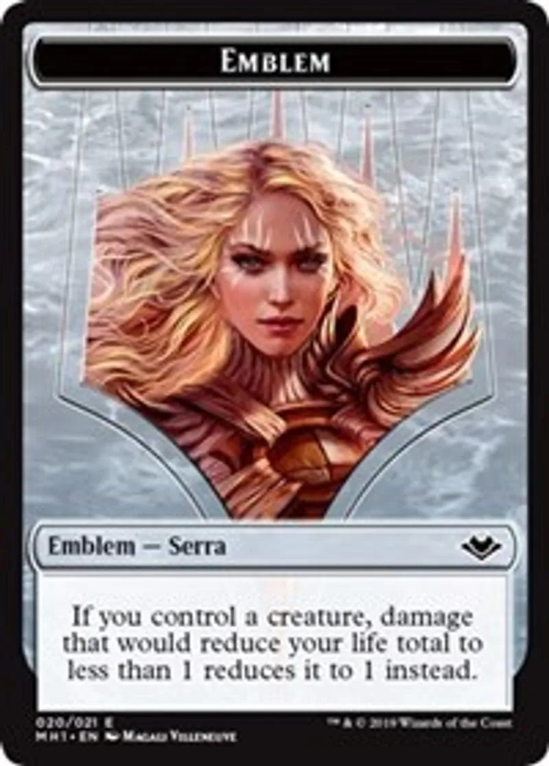 Magic: the Gathering (mtg) Token Emblem - Serra Emblem - Serra the Benevolent from Modern Horizons Tokens (TMH1) last updated 2025-09-20 16:26:02