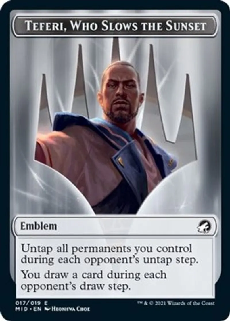 Emblem - Teferi, Who Slows the Sunset is a Token in the set Innistrad: Midnight Hunt Tokens.