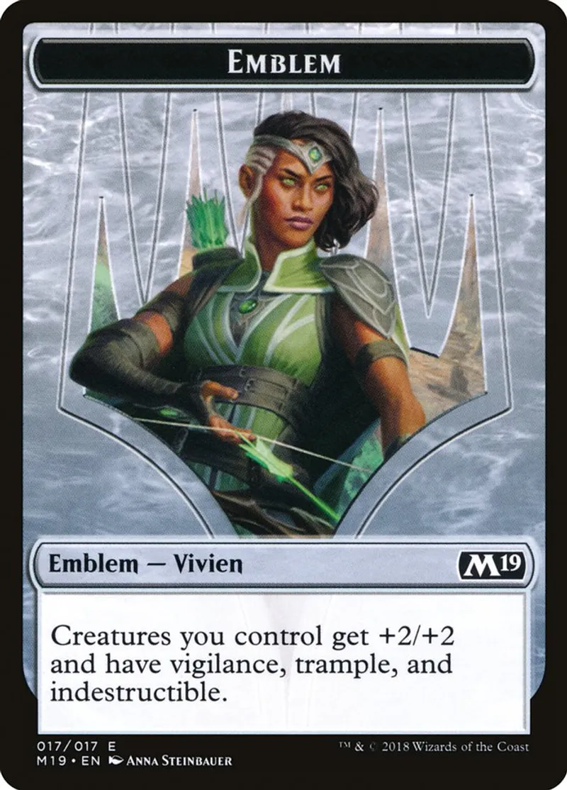 Magic: the Gathering (mtg) Token Emblem — Vivien Emblem - Vivien Reid from Core Set 2019 Tokens (TM19) last updated 2026-02-25 16:08:02