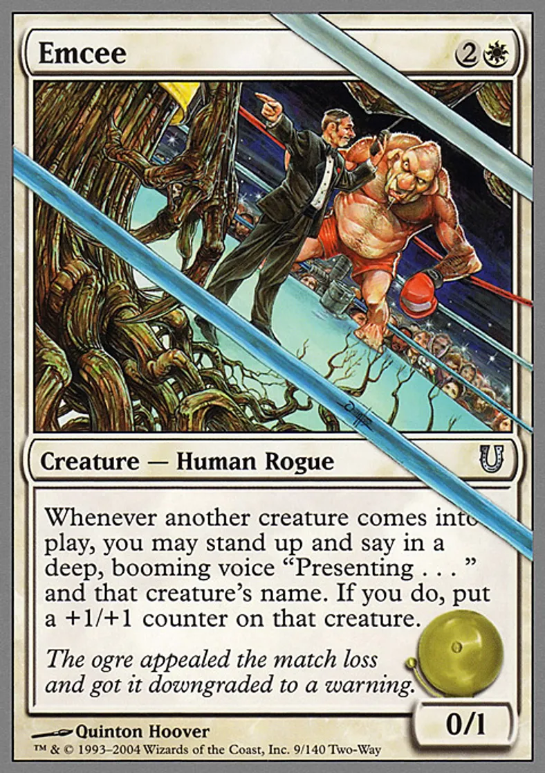 Magic: the Gathering (mtg) Uncommon Creature- Human Rogue Emcee from Unhinged (UNH) last updated 2026-01-31 15:18:06