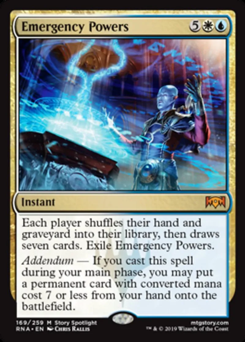 Magic: the Gathering (mtg) Mythic Rare Instant Emergency Powers from Ravnica Allegiance (RNA) last updated 2026-02-21 16:56:02