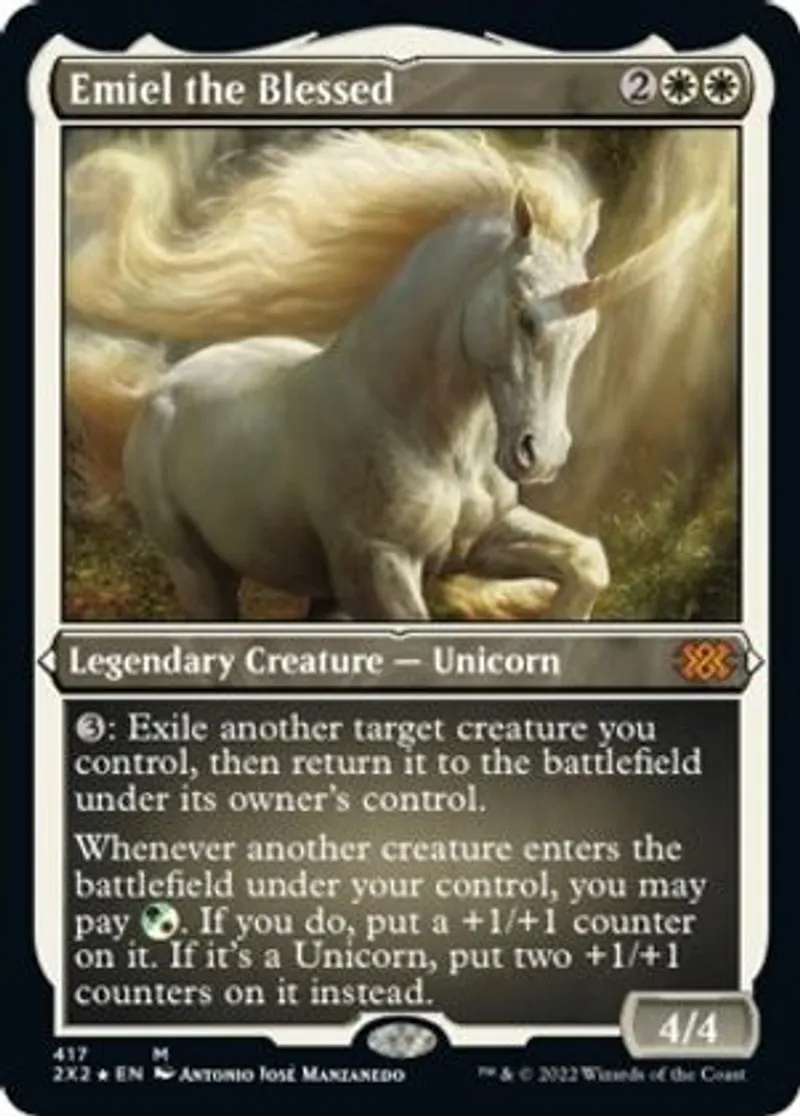 Magic: the Gathering (mtg) Mythic Rare Legendary Creature — Unicorn Emiel the Blessed from Double Masters 2022 (2X2) last updated 2026-02-24 15:38:02