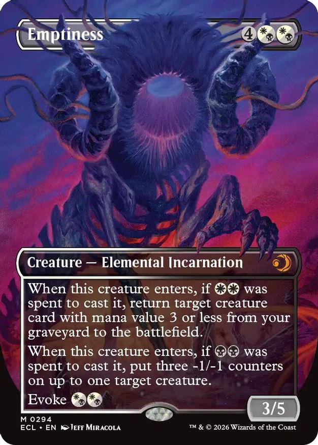 Magic: the Gathering (mtg) Mythic Rare creature — elemental incarnation Emptiness from Lorwyn Eclipsed (ECL) last updated 2025-12-04 14:21:36