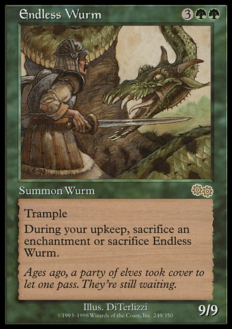 | Oracle Text | Trample At the beginning of your upkeep, sacrifice Endless Wurm unless you sacrifice an enchantment. | ||