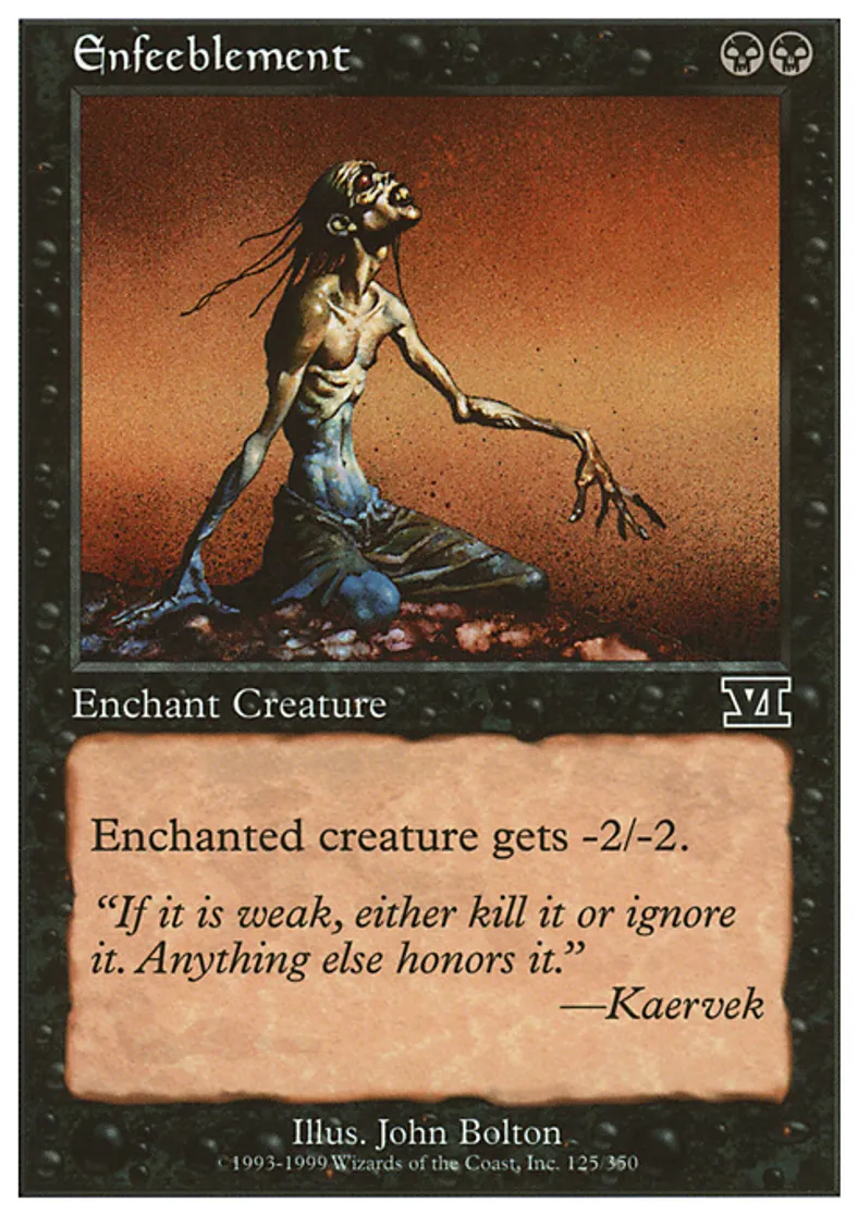 Magic: the Gathering (mtg) Common Enchantment - Aura Enfeeblement from Classic Sixth Edition (6ED) last updated 2026-02-21 17:33:36