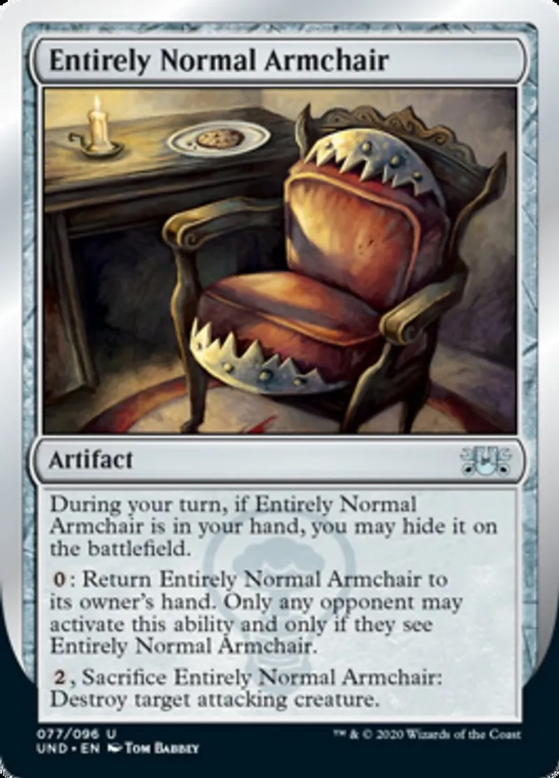 | Oracle Text | During your turn, if Entirely Normal Armchair is in your hand, you may hide it on the battlefield.
