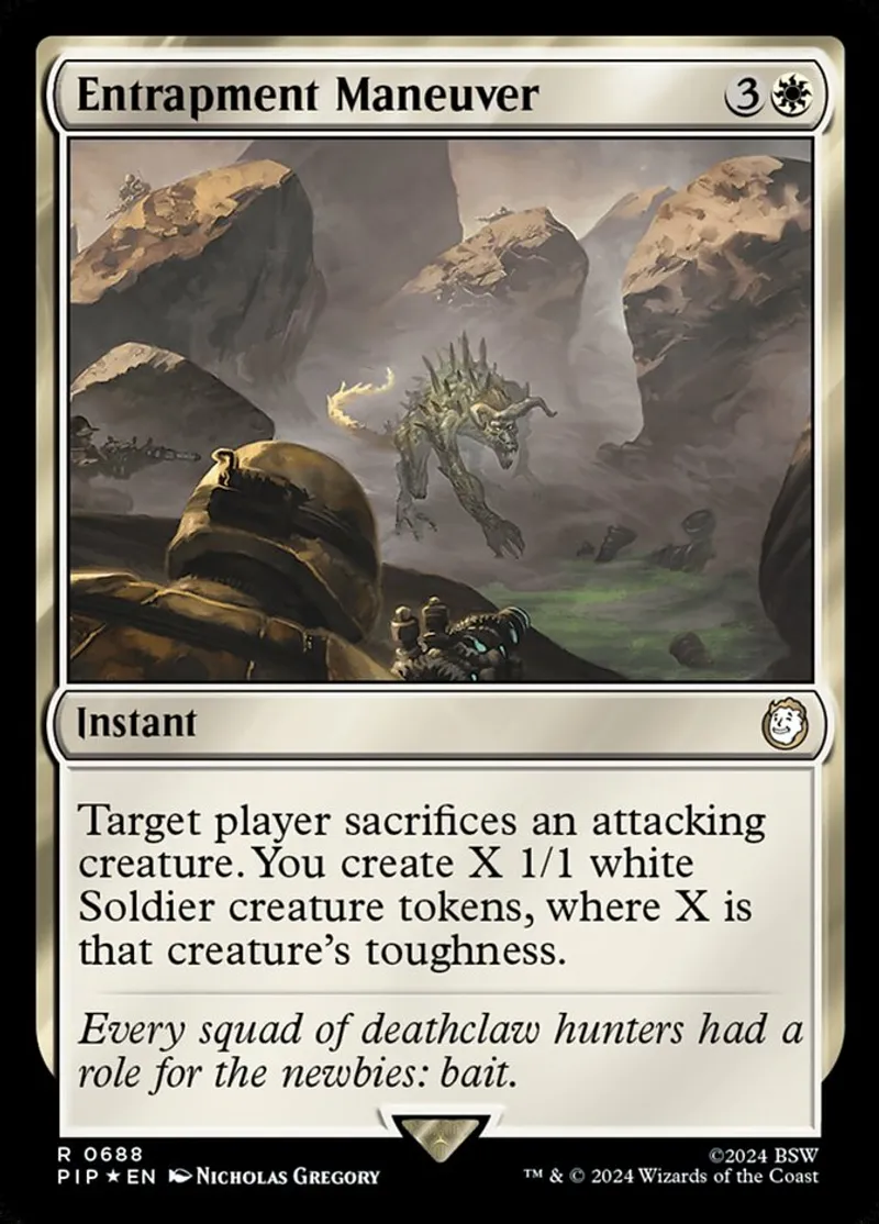 Entrapment Maneuver (Surge Foil) is a rare in the set Universes Beyond: Fallout.