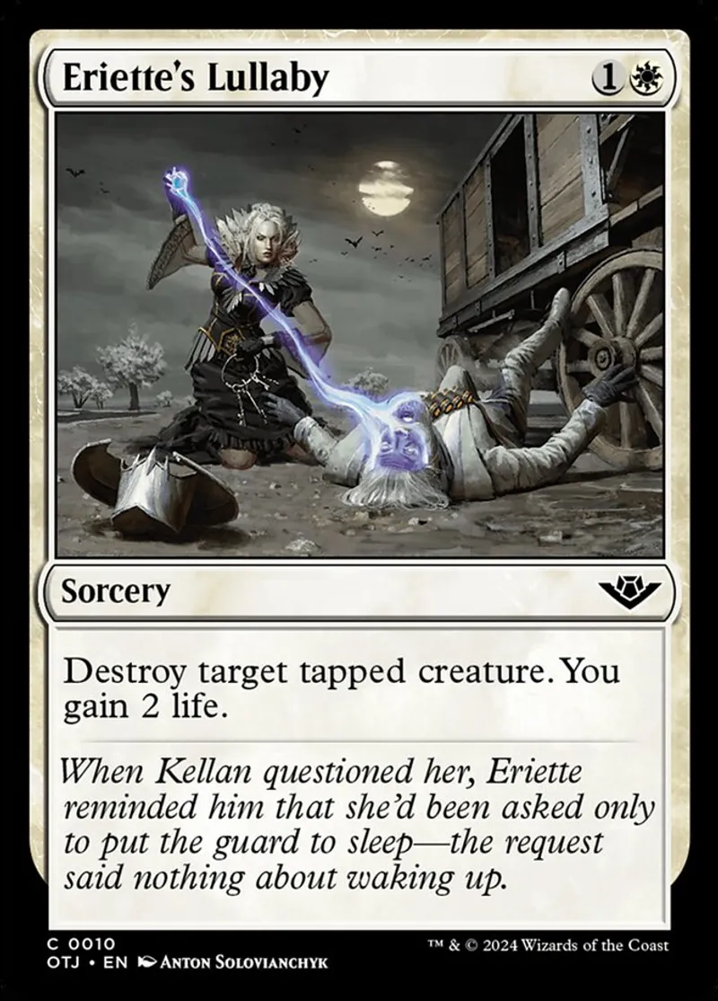 Eriette's Lullaby is a common in the set Outlaws of Thunder Junction.