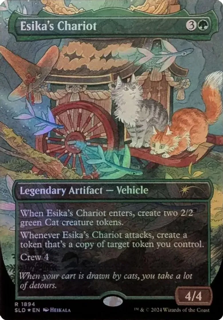 Magic: the Gathering (mtg) Rare legendary artifact — vehicle Esika's Chariot from Secret Lair Drop Series (SLD) last updated 2025-12-13 15:07:31