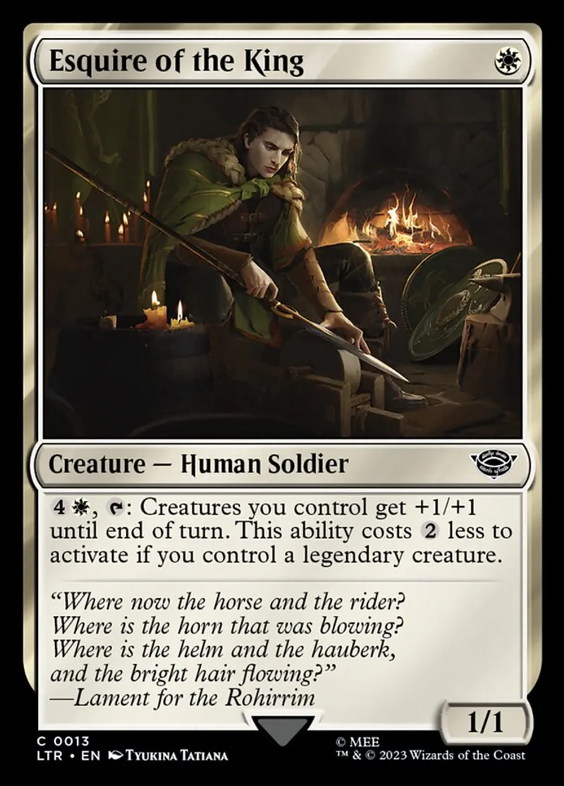 Magic: the Gathering (mtg) common Creature — Human Soldier Esquire of the King from The Lord of the Rings: Tales of Middle-earth (ltr) last updated 2026-02-21 15:41:32