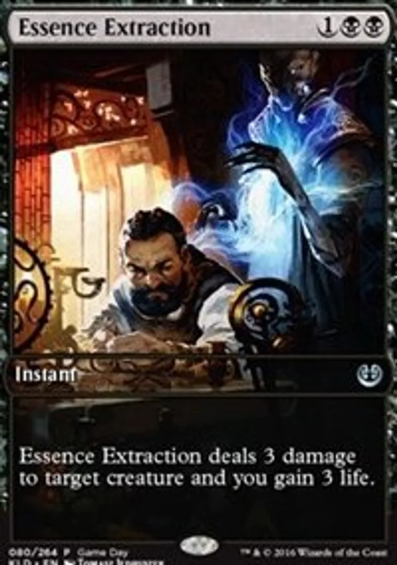 | Oracle Text | Essence Extraction deals 3 damage to target creature and you gain 3 life. | ||