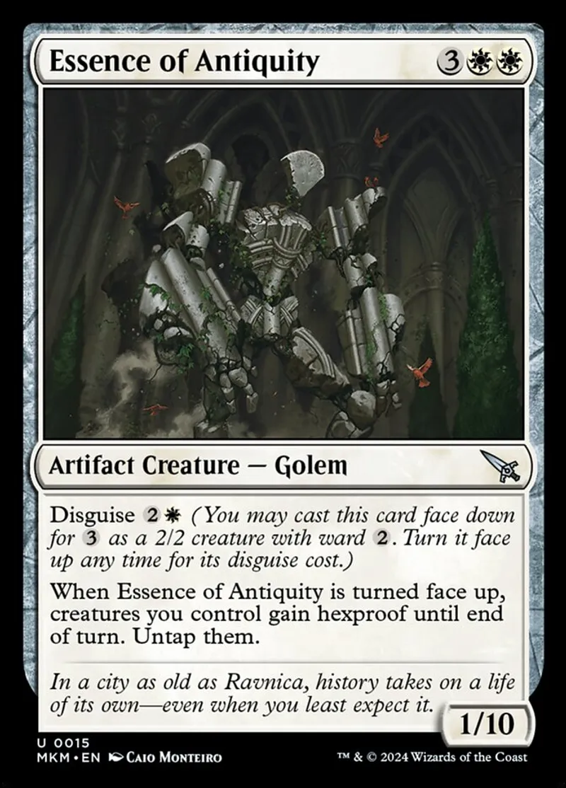 Magic: the Gathering (mtg) uncommon Artifact Creature — Golem Essence of Antiquity from Murders at Karlov Manor (mkm) last updated 2025-12-13 15:53:32