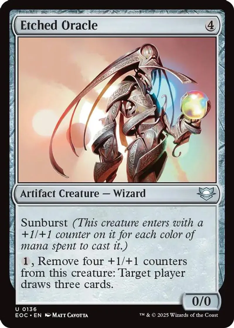 Etched Oracle is a Uncommon in the set Commander: Edge of Eternities.