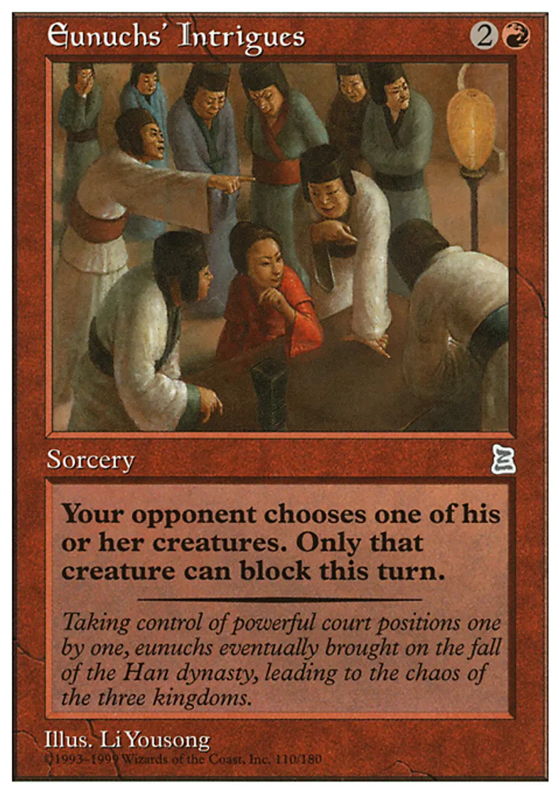 Magic: the Gathering (mtg) Uncommon Sorcery Eunuchs' Intrigues from Portal Three Kingdoms (PTK) last updated 2026-02-24 14:44:33