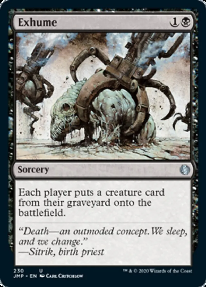 Magic: the Gathering (mtg) common Sorcery Exhume from Jumpstart (jmp) last updated 2026-02-24 15:03:02