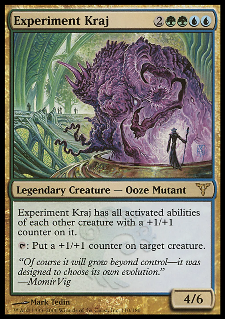 | Oracle Text | Experiment Kraj has all activated abilities of each other creature with a +1/+1 counter on it. {{t}}: Put a +1/+1 counter on target creature. | ||