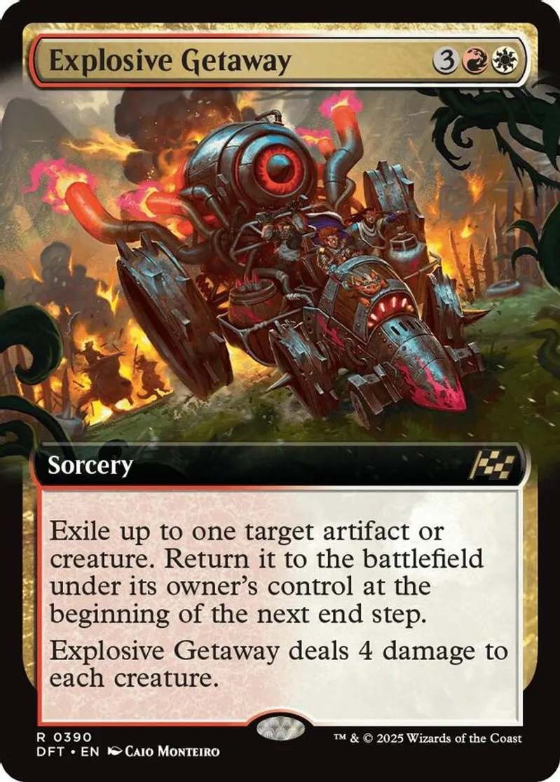 Explosive Getaway (Extended Art) is a Rare in the set Aetherdrift.
