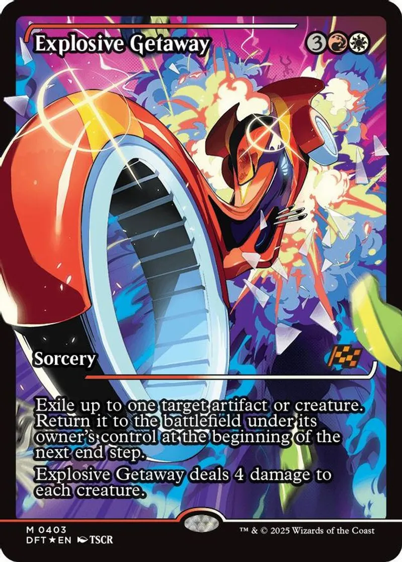 Magic: the Gathering (mtg) Mythic Rare sorcery Explosive Getaway from Aetherdrift (DFT) last updated 2025-12-13 15:35:36