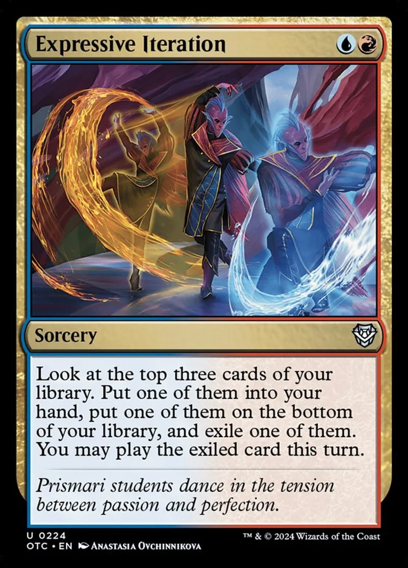 Magic: the Gathering (mtg) uncommon Sorcery Expressive Iteration from Outlaws of Thunder Junction Commander (otc) last updated 2026-02-24 15:15:02
