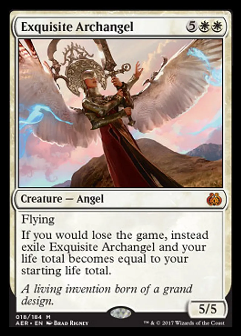 | Oracle Text | Flying If you would lose the game, instead exile Exquisite Archangel and your life total becomes equal to your starting life total. | ||