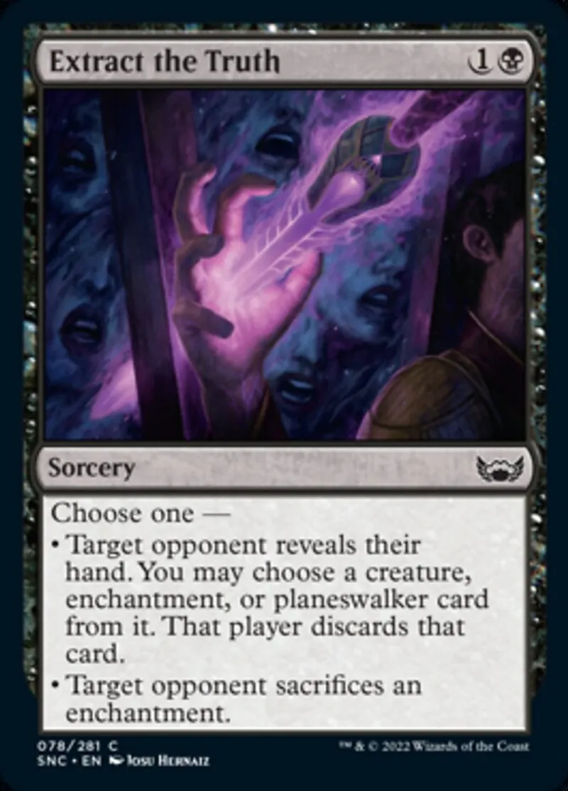 Magic: the Gathering (mtg) common Sorcery Extract the Truth from Streets of New Capenna (snc) last updated 2026-02-21 16:04:36