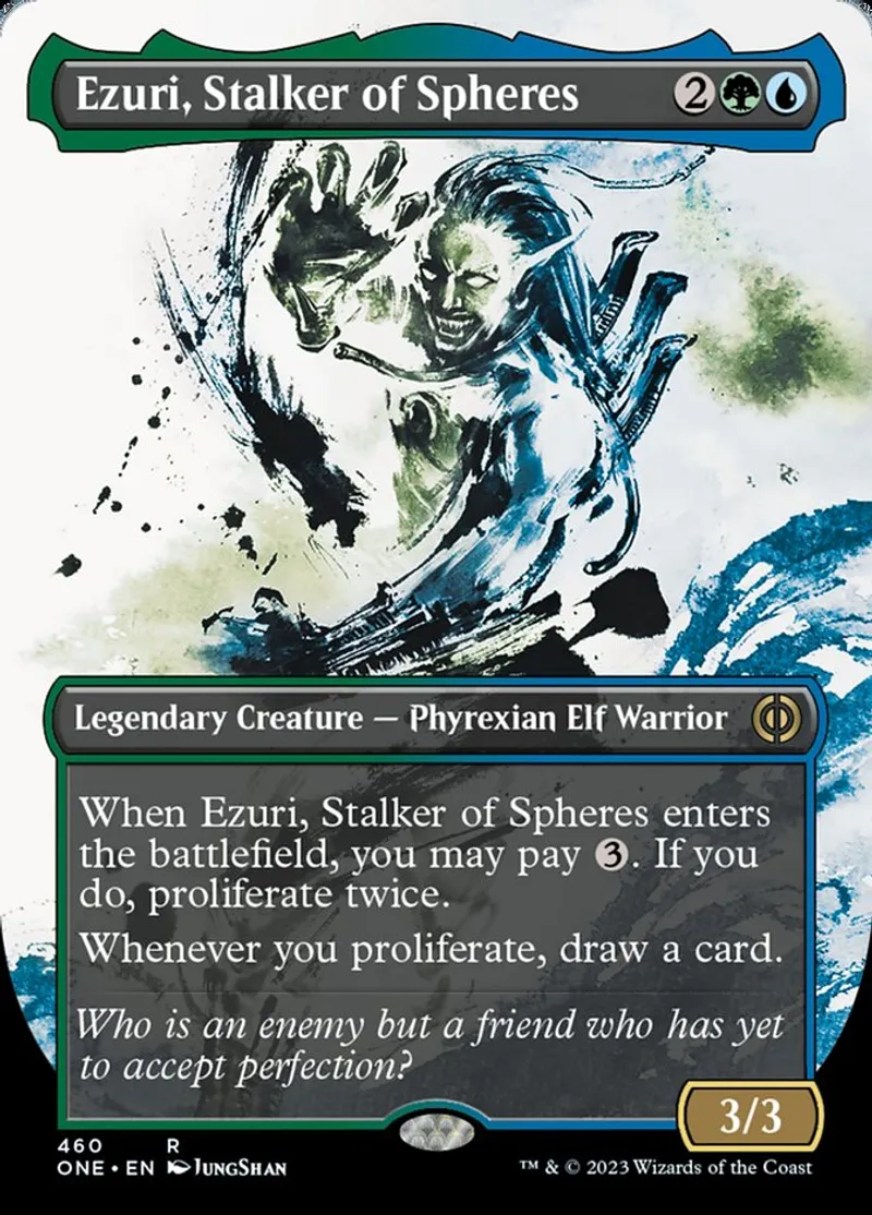 | Oracle Text | When Ezuri, Stalker of Spheres enters the battlefield, you may pay {3}. If you do, proliferate twice.
